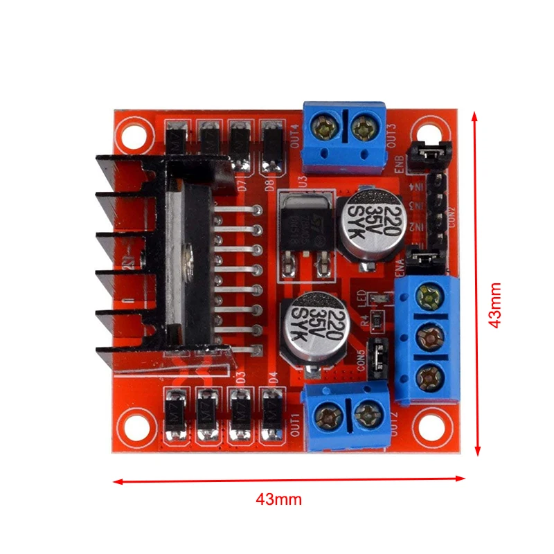 This module USES L298N as the main drive chip, with strong driving ability, low heat and strong anti-interference ability.